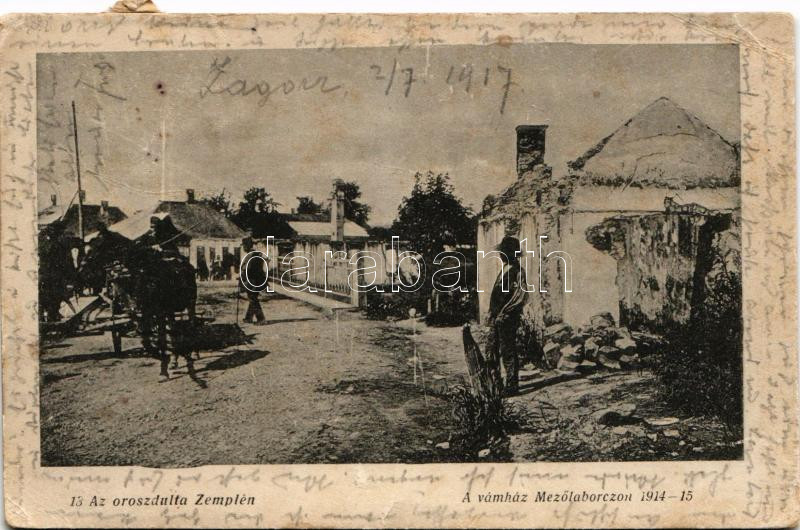 1917 Mezőlaborc, Medzilaborce; Az oroszdúlta Zemplén. A vámház Mezőlaborczon 1914-15. Danielisz Lajos kiadása / WWI K.u.K. military, damaged customs office after the Russians' destruction (EB)