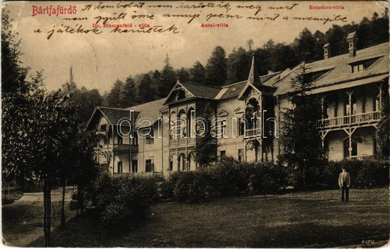 Bártfafürdő, Bardejovské Kúpele, Bardiov, Bardejov; Dr. Blumenfeld, Antal és Erzsébet villa. Eschwig Ede és Hajts kiadása, Hajts Kornél felvétele / villas (EK)
