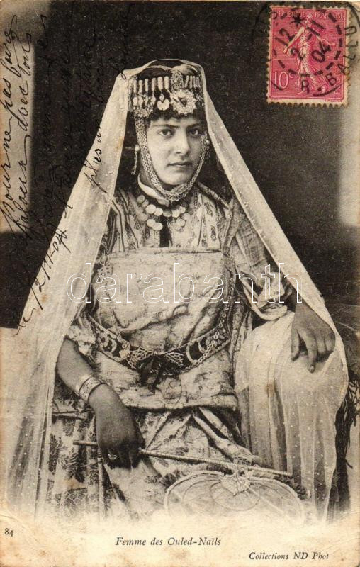 Femmes des Ouled-Nails / Ouled-Nail folklore (fa) https://www.darabanth.com/hu/514-Filatelia-kepeslap-numizmatika-mutargy-konyv-papirregiseg-ekszer-aukcio/515.0/Kepeslapok/Folklor~1162/Femmes-des-Ouled-Nails-Ouled-Nail-folklore-fa~II1084457