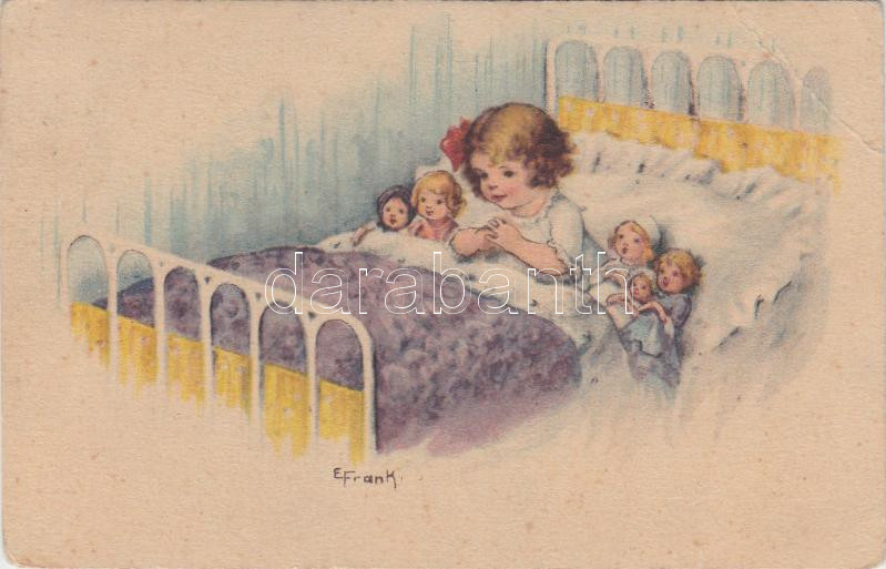Little girl praying in bed, dolls s: E. Frank (EB) https://www.darabanth.com/hu/514-Filatelia-kepeslap-numizmatika-mutargy-konyv-papirregiseg-ekszer-aukcio/515.0/Kepeslapok/Gyerek~1163/Little-girl-praying-in-bed-dolls-s-E-Frank-EB~II1035928