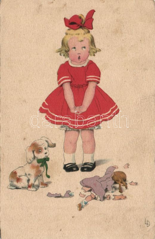 Leírás: Little girl singing, Meissner & Buch Künstler-Postkarten Serie 2627. s: L.D. (Rb)