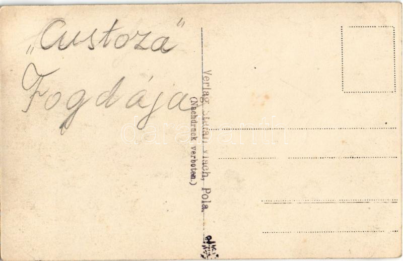 "Custoza fogdája" Osztrák-Magyar Haditengerészet matrózai / ... https://www.darabanth.com/hu/514-Filatelia-kepeslap-numizmatika-mutargy-konyv-papirregiseg-ekszer-aukcio/515.0/Kepeslapok/Hadihajo~1164/Custoza-fogdaja-Osztrak-Magyar-Haditengereszet-matrozai-WWI-Austro-Hungarian-Navy-KuK-Kr~II3480445