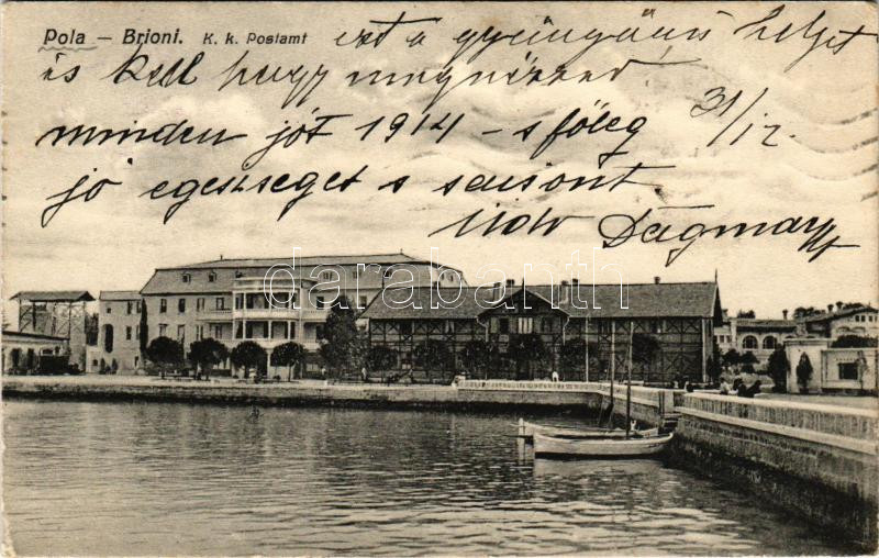 Leírás: 1914 Brijuni, Brioni (Pola, Pula); K. k. Postamt / post office. G. Fano (EK)