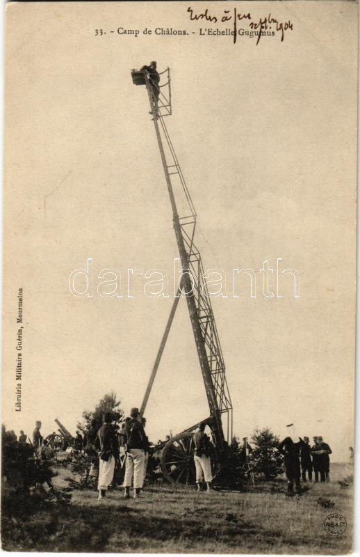 1904 Camp de Chalons, L'Echelle Gugumus / French military, ladder... https://www.darabanth.com/hu/514-Filatelia-kepeslap-numizmatika-mutargy-konyv-papirregiseg-ekszer-aukcio/515.0/Kepeslapok/Katonai~1173/1904-Camp-de-Chalons-LEchelle-Gugumus-French-military-ladder-EK~II3152089