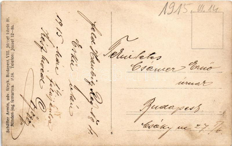 Leírás: 1915 Feldhaubitz Reg. No. 4. / Osztrák-magyar tábori tarackos ezred katonái eskütétel után / WWI K.u.K. military artillery, soldiers after taking the oath. Schäffer Armin udvari fényképész (Budapest) photo