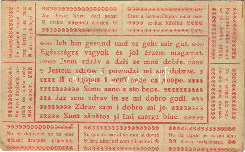 Ezen a levelezőlapon mást nem szabad közölni: Egészséges vagyok és jól érzem magamat / WWI Austro-Hungarian military postcard: "The only communicable thing is: I'm healthy and I am feeling good" (EB)