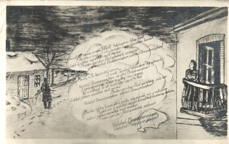 Valahol Magyarországon / WWII Hungarian military greeting card, Karády... https://www.darabanth.com/hu/514-Filatelia-kepeslap-numizmatika-mutargy-konyv-papirregiseg-ekszer-aukcio/515.0/Kepeslapok/Katonai~1173/Valahol-Magyarorszagon-WWII-Hungarian-military-greeting-card-Karady-Katalin-lyrics-EK~II1052100