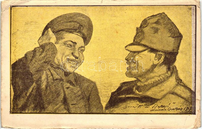 itt a béke! "Békelapok" / WWI military peace propaganda, hum... https://www.darabanth.com/hu/514-Filatelia-kepeslap-numizmatika-mutargy-konyv-papirregiseg-ekszer-aukcio/515.0/Kepeslapok/Katonai~1173/itt-a-beke-Bekelapok-WWI-military-peace-propaganda-humour-s-Lazar-Oszkar-b~II1055149