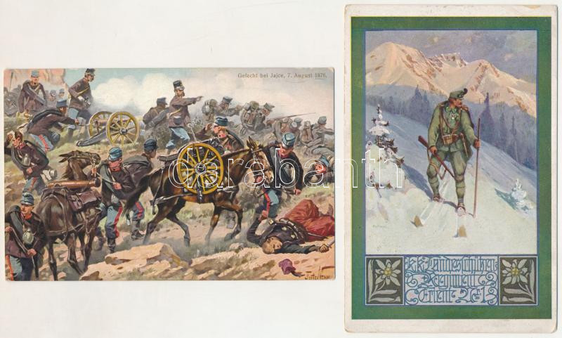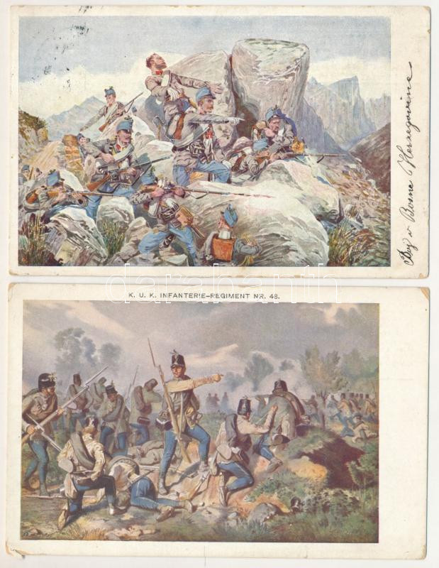 10 db RÉGI motívum képeslap vegyes minőségben: katonai művészlapok / 10 pre-1945 motive postcards in mixed quality: military art postcards, K.u.K. soldiers