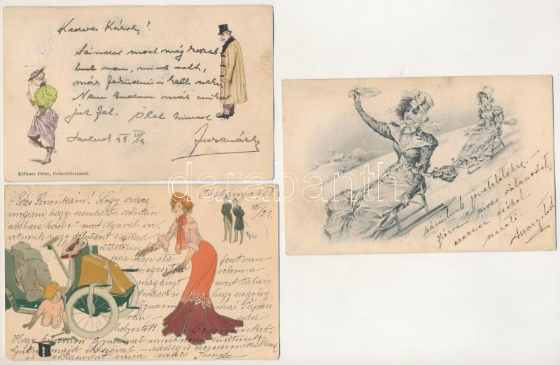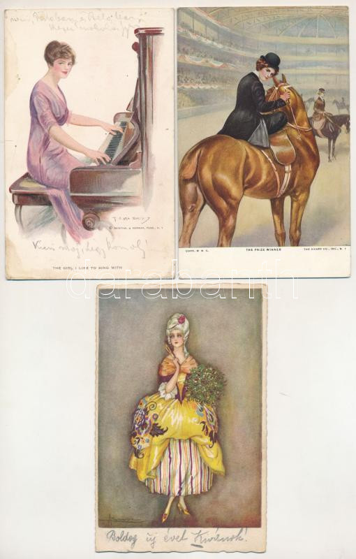 Leírás: 15 db RÉGI motívum képeslap: hölgyek művészlapok / 15 pre-1945 motive postcards: lady art postcards