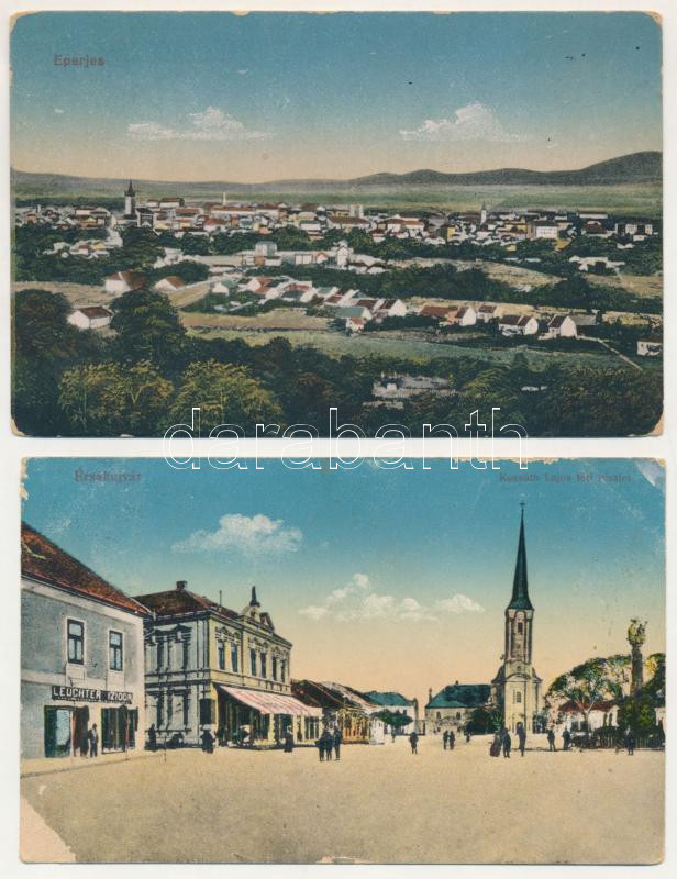 Leírás: 2 db RÉGI felvidéki város képeslap: Eperjes és Érsekújvár / 2 pre-1945 Upper Hungarian town postcards: Presov and Nové Zámky