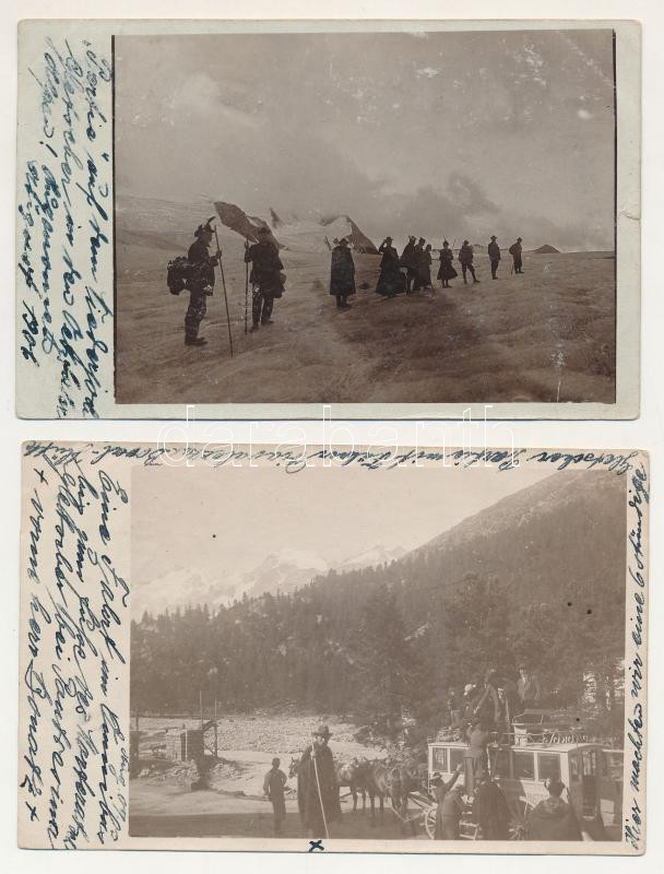 Leírás: 2 db RÉGI fotós képeslap: kirándulók, hegymászók / 2 pre-1945 photo postcards: hikers