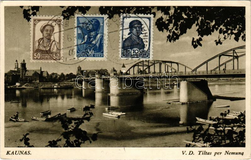 Kaunas, Kowno; V.D. Tiltas per Nemuna / Vytautas Brücke über die Memel... https://www.darabanth.com/hu/514-Filatelia-kepeslap-numizmatika-mutargy-konyv-papirregiseg-ekszer-aukcio/515.0/Kepeslapok/Litvania~1134/Kaunas-Kowno-VD-Tiltas-per-Nemuna-Vytautas-Brucke-uber-die-Memel-Druck-A-G-Spindulys-br~II3461233