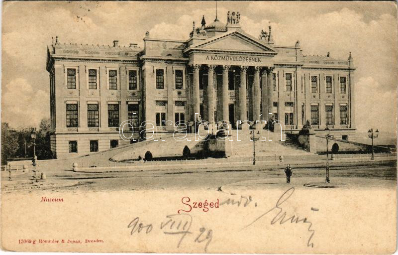 1900 Szeged, Múzeum. Römmler & Jonas (EK) https://www.darabanth.com/hu/514-Filatelia-kepeslap-numizmatika-mutargy-konyv-papirregiseg-ekszer-aukcio/515.0/Kepeslapok/Magyarorszag~1104/1900-Szeged-Muzeum-Rommler-amp-Jonas-EK~II3475236