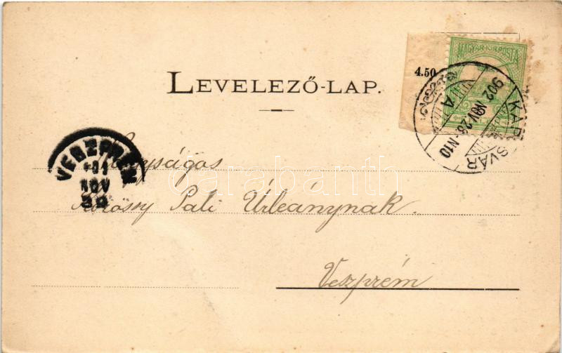 Leírás: 1902 Kaposvár, Széchenyi tér, Vajda Pál üzlete. Gerő Zsigmond kiadása (gyűrődés / crease)