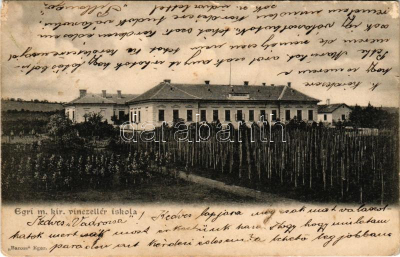 Leírás: 1904 Eger, M. kir. állami vincellér iskola, szőlőskert. Baross nyomda kiadása (EM)