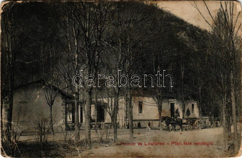 Leírás: 1911 Miskolc, Hámor és Lillafüred, Pléli féle vendéglő, étterem, lovaskocsi + "HÁMOR BORSOD VM. POSTAI ÜGYN." (fl)