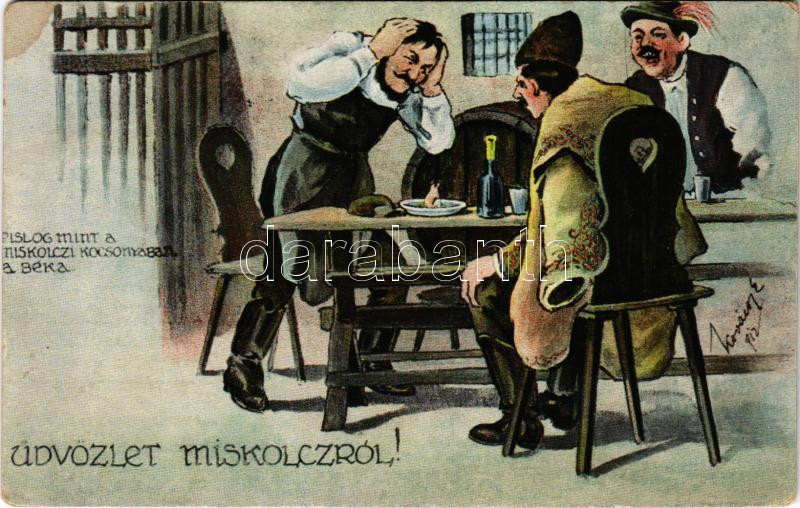 Leírás: 1922 Miskolc, Pislog mint a miskolci kocsonyában a béka. Grünwald Ignác kiadása s: Kovácsy E. (EM)