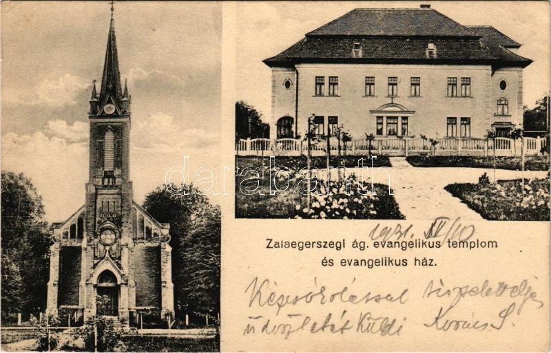 Leírás: 1931 Zalaegerszeg, ágostoni hitvallású evangélikus templom és evangélikus ház