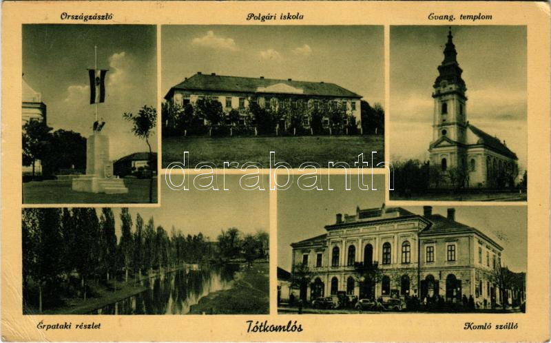 1948 Tótkomlós, Országzászló, Polgári iskola, Evangélikus templom, Érp... https://www.darabanth.com/hu/514-Filatelia-kepeslap-numizmatika-mutargy-konyv-papirregiseg-ekszer-aukcio/515.0/Kepeslapok/Magyarorszag~1104/1948-Totkomlos-Orszagzaszlo-Polgari-iskola-Evangelikus-templom-Erpataki-reszlet-Hotel-~II3474546