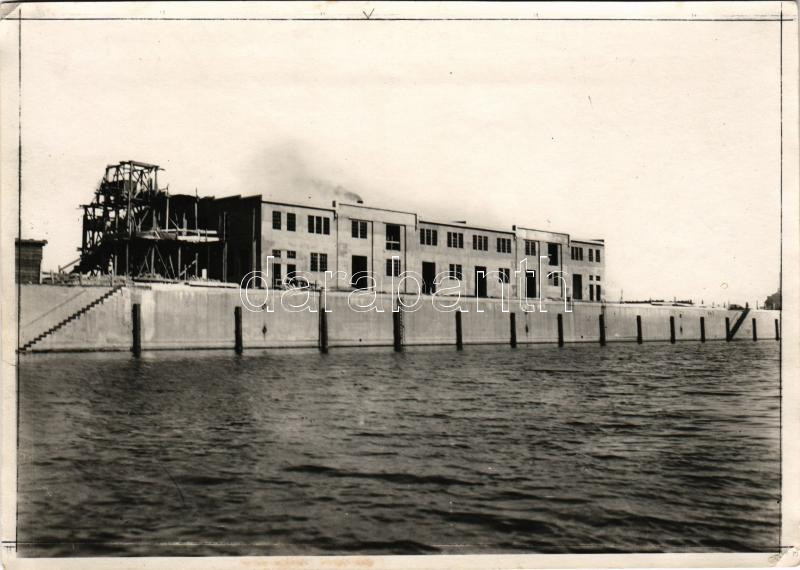 Budapest XXI. Csepel-Szabadkikötő, az épülő budapesti országos kereskedelmi és ipari kikötő, partfal, állványozás. photo + "Budapesti Országos Kereskedelmi- és Ipari Kikötő Kormánybiztossága VII. Erzsébet-körút 19. sz." (non PC) (17,6 x 12,6 cm) (EK)