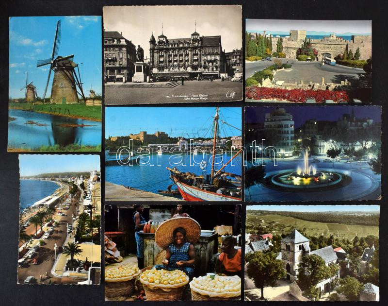 Leírás: Franciaország, kevesebb Görögország, kevés holland és tengerentúli modern képeslap hullámkarton dobozban