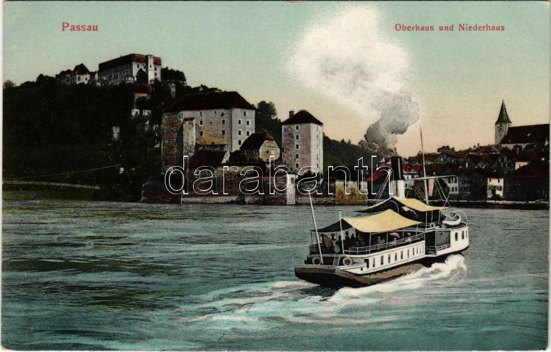 Leírás: 1930 Passau, Oberhaus und Niederhaus / view, steamship