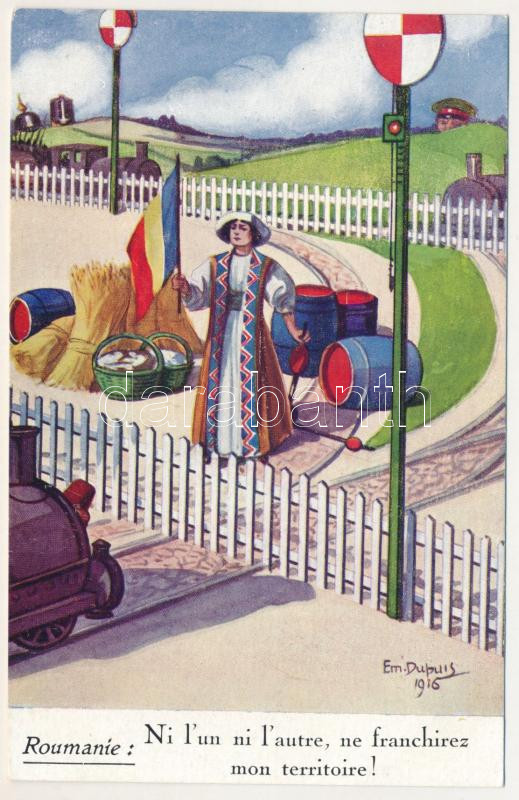 Leírás: Roumanie: Ni l'un ni l'autre, ne franchirez mon territoire / Romanian patriotic propaganda s: Em. Dupuis