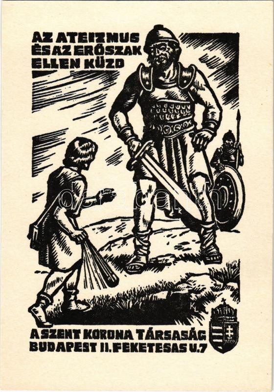 Az ateizmus és az erőszak ellen küzd a Szent Korona Társaság! Budapest II. Fekete Sas utca 7. / Hungarian anti-ateist and anti-violence propaganda s: K. L.