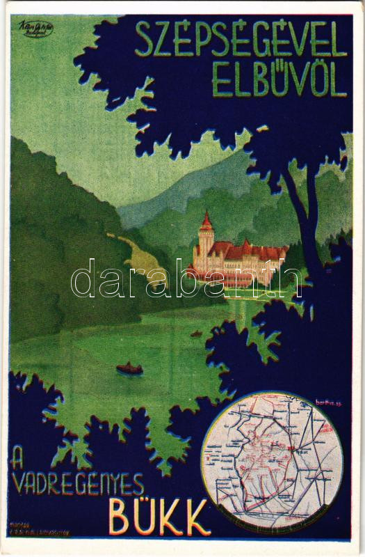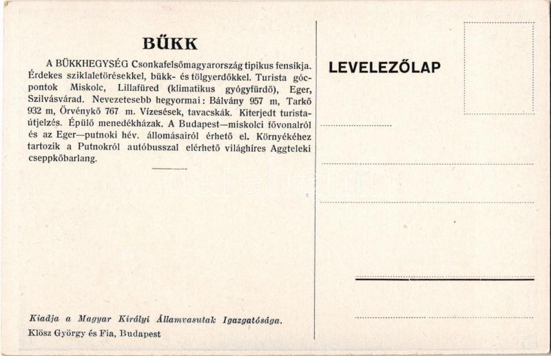 Lillafüred (Miskolc), Szépségével elbűvöl a vadregényes Bükk. A Magyar Királyi Államvasutak (MÁV) turisztikai reklám képeslapja, kiadja Klösz György és Fia / Hungarian State Railways tourism campaign advertisement s: Bartha