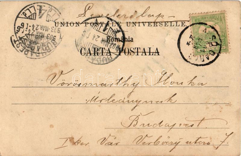 1903 Sinaia, Monastirea / monastery (crease) https://www.darabanth.com/hu/514-Filatelia-kepeslap-numizmatika-mutargy-konyv-papirregiseg-ekszer-aukcio/515.0/Kepeslapok/Romania~1141/1903-Sinaia-Monastirea-monastery-crease~II3480289