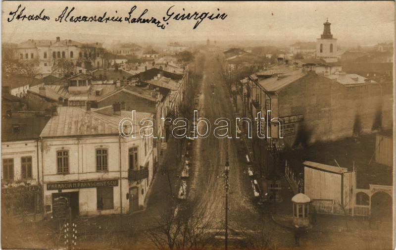 Leírás: Giurgiu, Gyurgyevó, Gyurgyó; Farmacia N. Paraschivescu / street, pharmacy, shops. photo (crease)