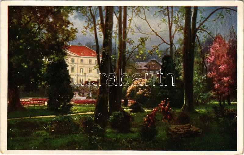 Leírás: Ljubljana, Laibach; Tivoli. Künstlerkarte Nr. 7013/3. Kunstverlag Hans Hausner / castle garden (EK)