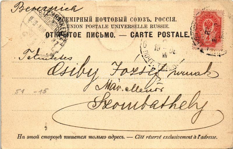 Leírás: 1903 Kharkiv, Kharkov, Harkov, Chárkiv, Charkow; La place St. Nicolas / square, market, coat of arms. Art Nouveau, floral frame (wet corner)