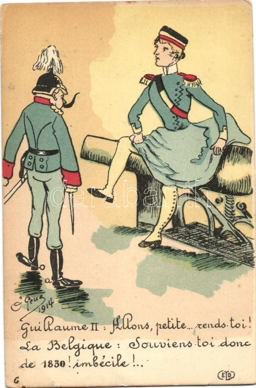 Wilhelm II and Alpons WWI military humorous card s: Geus (b)