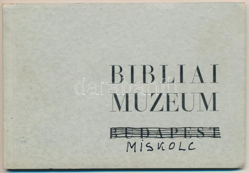 Budapest, Bibliai Múzeum (a borítón és a belső lapon kézzel átírva Miskolcra), képeslapfüzet 12 bibliai témájú lappal / Bible Museum, postcard booklet with 12 pages