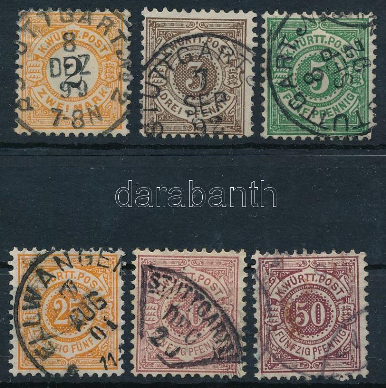 Német Államok - Württemberg 1881-1890 Mi 53 + 55-59 (Mi EUR min. 106,5... https://www.darabanth.com/hu/514-Filatelia-kepeslap-numizmatika-mutargy-konyv-papirregiseg-ekszer-aukcio/515.0/Kiemelt-kulfoldi-filatelia-tetelek-es-gyujtemenyek/Egyes-kulfoldi-kiadasok-rendkivul-alacsony-kikialtasi-aron~8/Nemet-Allamok-Wurttemberg-1881-1890-Mi-53-plus-55-59-Mi-EUR-min-106-50~II3480780