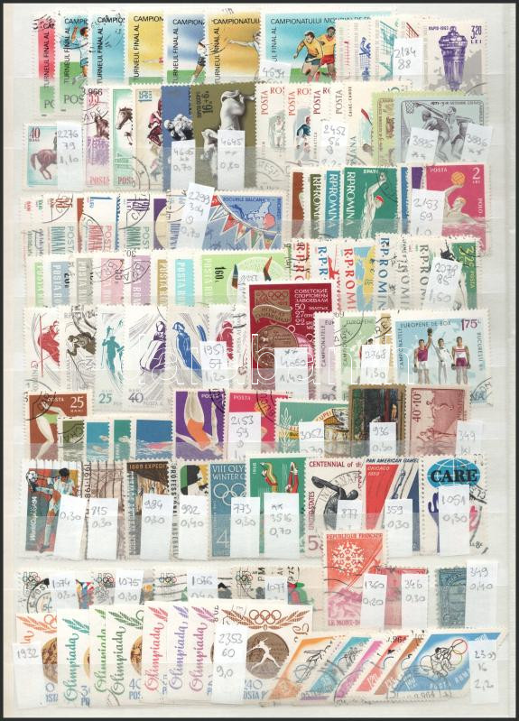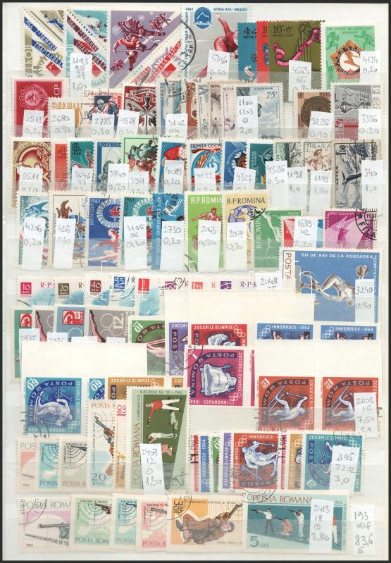 Leírás: 1932-1990 193 db sport és olimpia motívum bélyeg, köztük sorok is, A/4-es berakólap mindkét oldalán