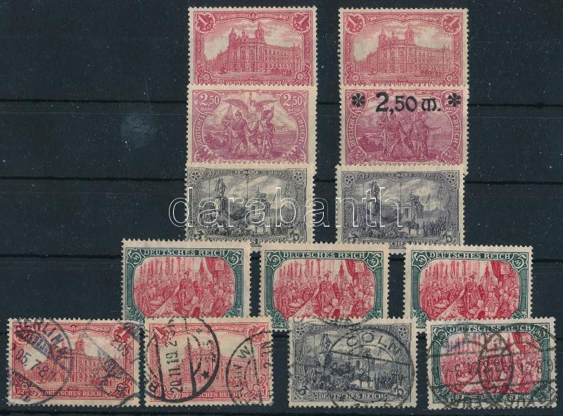 Leírás: Deustches Reich 13 db db bélyeg, javarészt 26 : 17 fogú márkás címletű bélyegek stecklapon