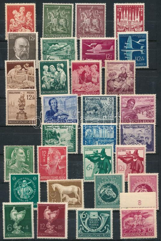 Leírás: Deutsches Reich 1941-1945 31 db teljes kiadás, összesen 59 db bélyeg, köztük ívszéliek is
