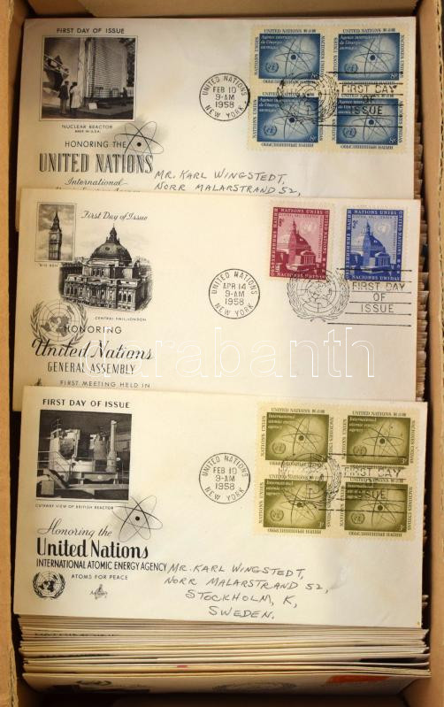 ENSZ néhány száz FDC, dobozban https://www.darabanth.com/hu/514-Filatelia-kepeslap-numizmatika-mutargy-konyv-papirregiseg-ekszer-aukcio/515.0/Kiemelt-kulfoldi-filatelia-tetelek-es-gyujtemenyek/Kulfoldi-gyujtemenyek-es-tetelek~12/ENSZ-nehany-szaz-FDC-dobozban~II3481201