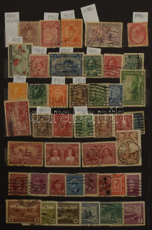 Leírás: Kanada 1897-2004, Ausztrália 1913-2007 és néhány New Foundland 1880-1947 bélyeg 10 lapos közepes berakóban (összesen kb 850 db bélyeg)
