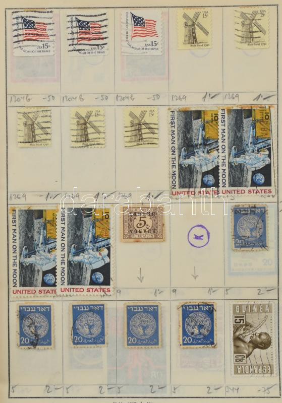 Leírás: Kb 4-4500 db vegyes külföldi bélyeg 10 db cserefüzetben, benne USA, Venezuela, El Salvador, Palesztina, Peru, Izrael, Szíria, Irak, India stb.