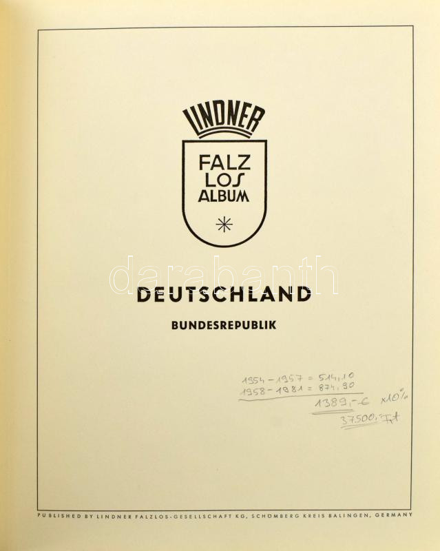 Leírás: NSZK 1955-1981 gyakorlatilag komplett gyűjtemény előnyomott falcmentes Lindner albumban