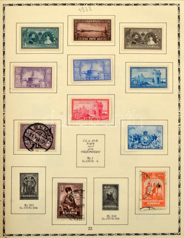 Leírás: Románia gyűjtemény a kezdetektől 1957-ig, sok jó kiadással, értékkel teljes sorokkal, blokkokkal, előnyomott albumban. Magas katalógus érték.