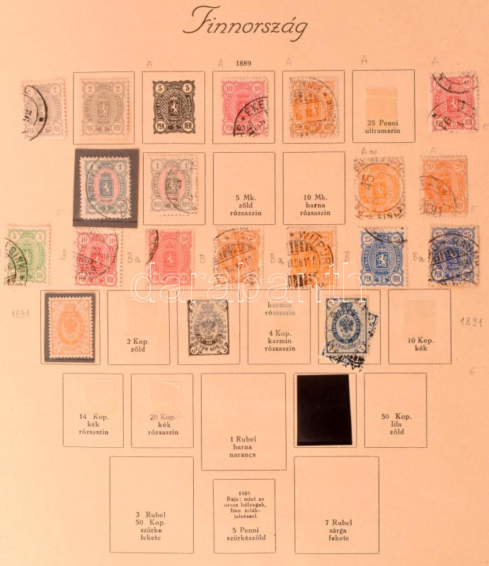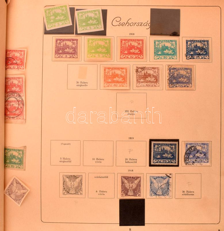 Vegyes régi külföldi bélyegek, gyűjteménymaradvány Turul albumban (Csehszlovákia, Dánia, Finnország, Franciaország, Hollandia, Norvégia, Svédország stb.), kb 1.400 db bélyeg