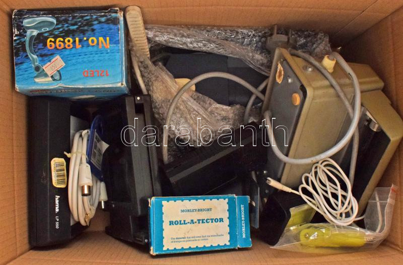 Leírás: Bélyegvizsgáló tétel, SAFE bélyegvizsgáló, vízjel vizsgáló, papírvastagság mérő, lápák, UV lámpa, angol vízjel vizsgáló, stb. dobozban