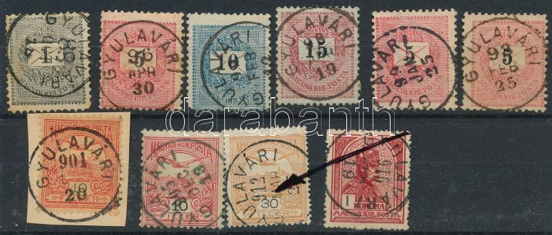 Leírás: 10 db "GYULAVÁRI" bélyegzés Krajcáros és Turul bélyegeken