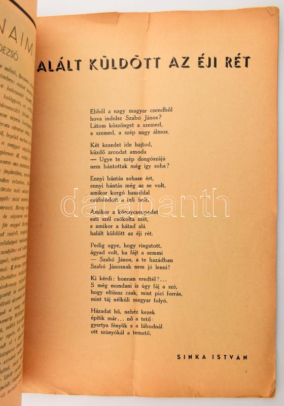 1939 Magyar Élet IV. évf. 6. sz. 1939. június. Szabó Dezső szám. Bp., "Jövő"-ny., 32 p. Kiadói papírkötés, sérült borítóval, szakadt, kissé foltos lapokkal, hajtásnyommal.
