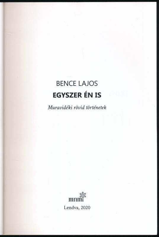 Leírás: Bence Lajos: Egyszer én is. Muravidéki rövid történetek. Lendva, 2020, Magyar Nemzetiségi Művelődési Intézet, 152 p. Kiadói papírkötés.
